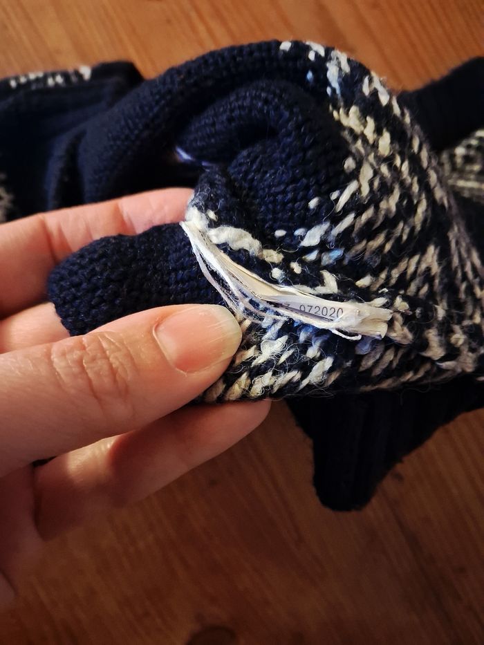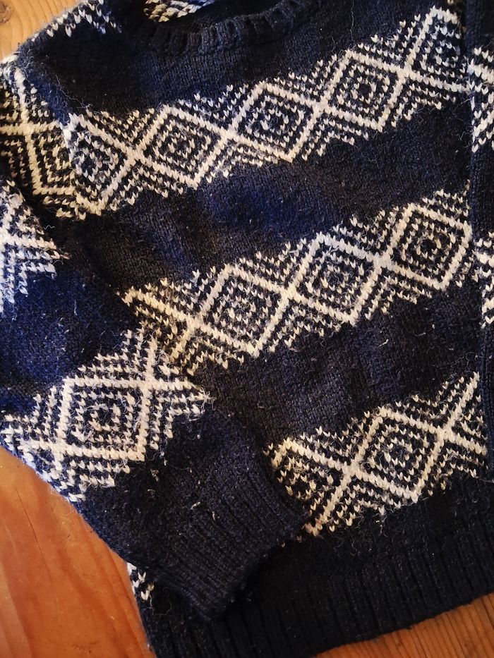 Pull d'hiver en bon état mais bouloché Etiquette compo découpée