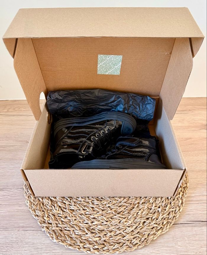 Chaussures vernies de la marque Vertbaudet en très bon état (vendues dans leur boîte d’origine). Baskets semi-montantes, semelle intérieure en cuir, semelle extérieure antidérapante en élastomère résistante, fermeture zippée côté intérieur sous patte bloquante, coloris noir, pointure : 29. Valeur neuves : 31,99€ Envoi rapide et soigné 📦