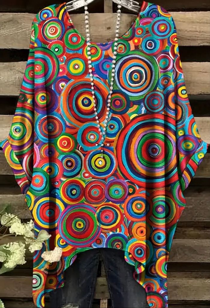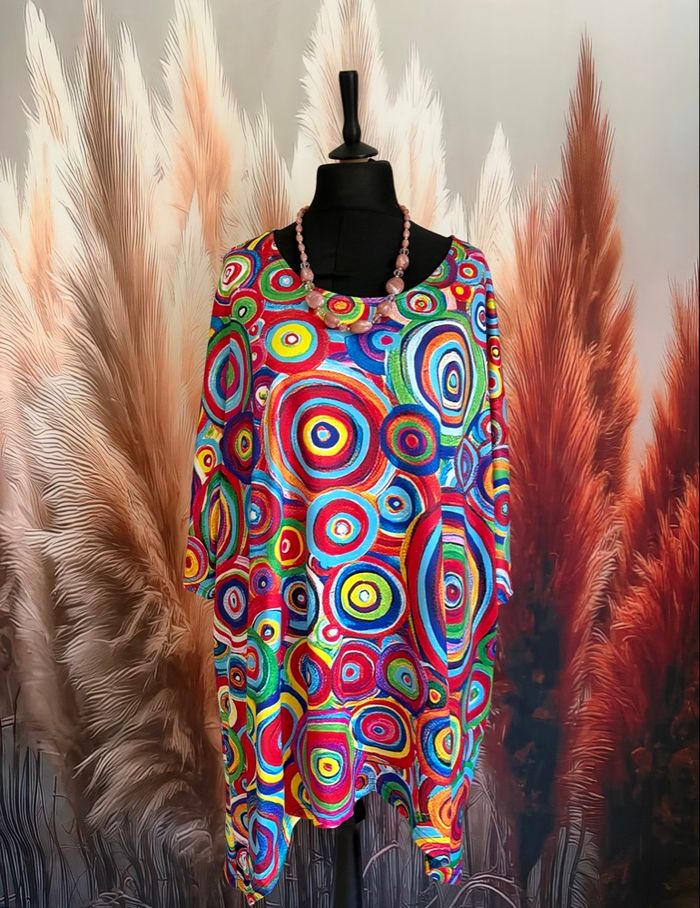 🎨 Magnifique tunique colorée – Idéale pour apporter du pep’s à votre tenue ! 🎨 À vendre : une superbe tunique neuve (sans étiquette), jamais portée et sans aucun défaut. Son style : ✨ Manches chauves-souris ✨ Col rond ✨ Une coupe originale avec pointes asymétriques, qui lui donne une très belle allure ✨ Un mélange de couleurs éclatantes pour une élégance naturelle Parfaite été comme hiver ! Composition : Polyester / Élasthanne (confort et souplesse). 📏 Taille indiquée : 5XL, mais correspond plutôt à un 56/58 (merci de bien vérifier les dimensions 👇) • Largeur aisselles à aisselles : 78 cm 📦 Envoi rapide via Mondial Relay 📬 Je réponds volontiers à vos questions — mais pas aux offres abusives 😉