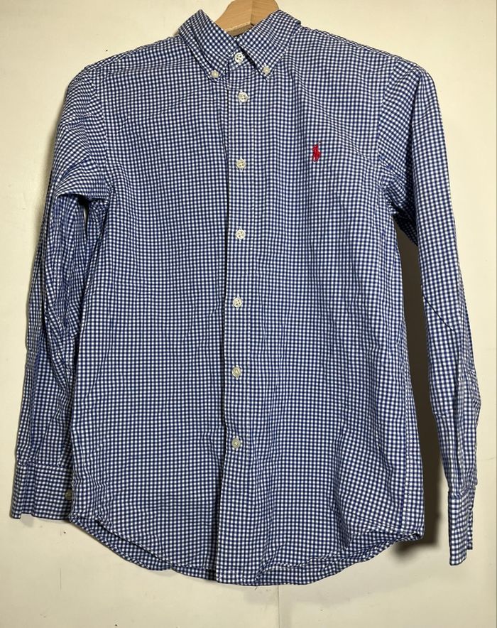 Chemise garçon Marque Ralph Lauren Âge 14 ans Longueur 60 cm Largeur 40 cm Couleur bleu et blanc En bonne état
