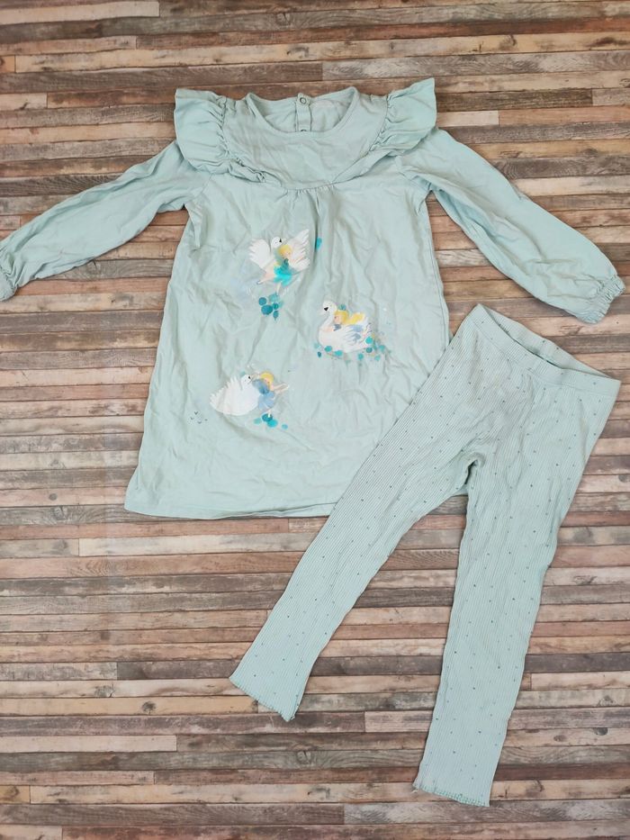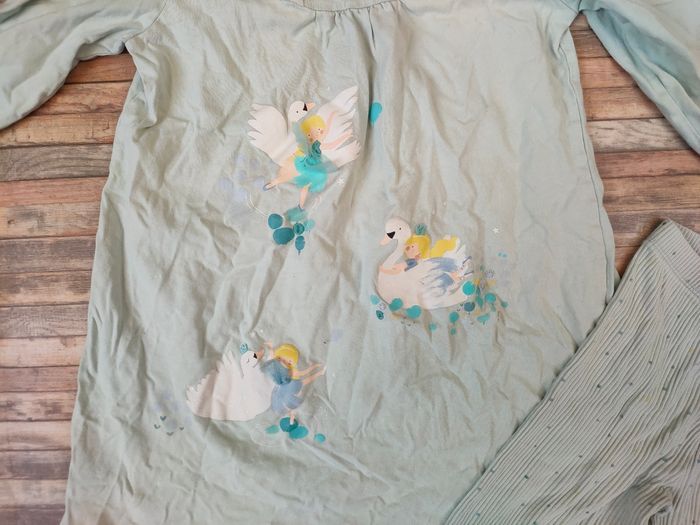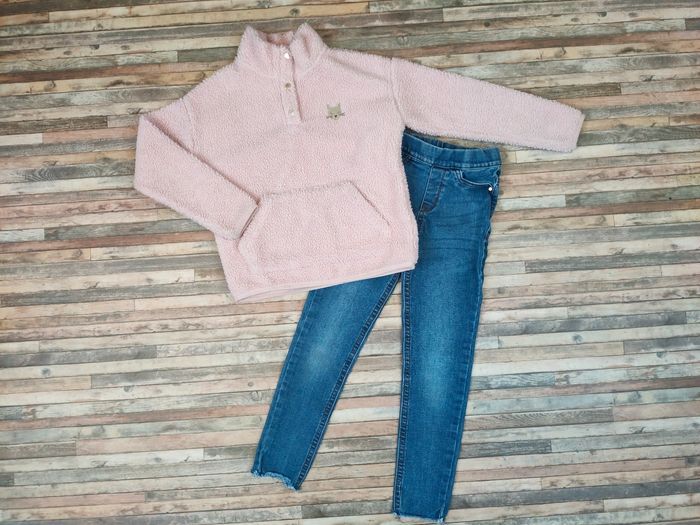 Joli lot de vêtements fille 8 ans peu portés car rechange chez mamie 🙂 👉Pull en Sherpa Okaïdi coloris rose poudré. Matière chaude et toute douce. Peu porté. 👉Jean slim taille élastique 👉 Pyjama Serjent Major coloris vert d'eau. Adorable motif fées. Robe de nuit manches longues+ legging assorti en maille côtelée. 100 % coton. Peu porté. 👉Lot de 4 tee-shirts en coton Petit Bateau. Ils ont été davantage portés, qq tâches estompées ici et là. 24.99€ le lot complet, à saisir.