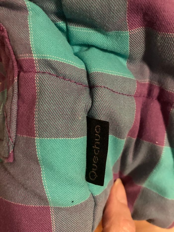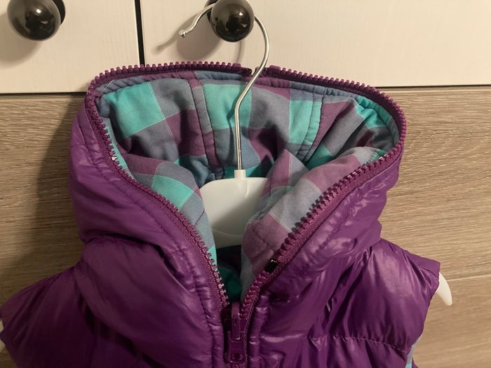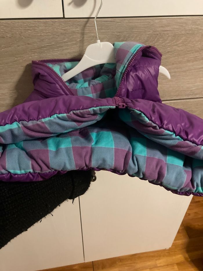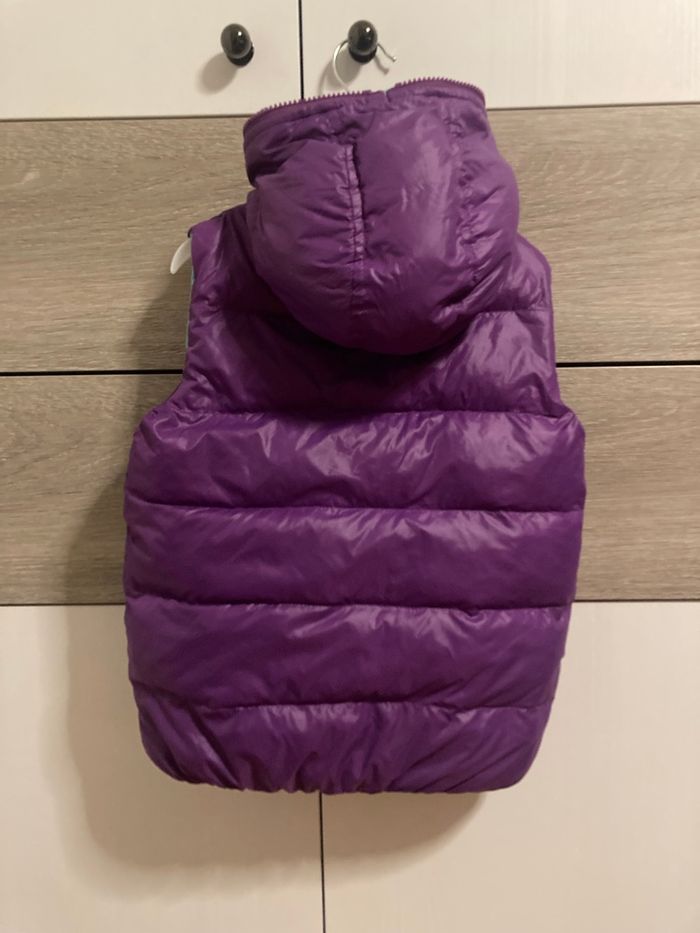 Gilet doudoune sans manche violet réversible. Bien épais.