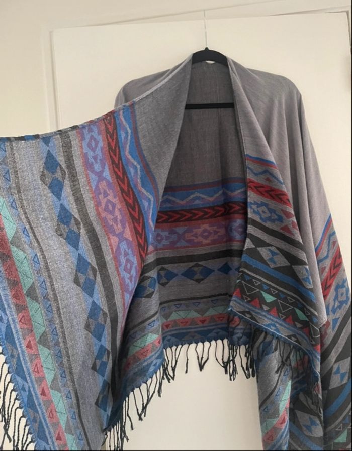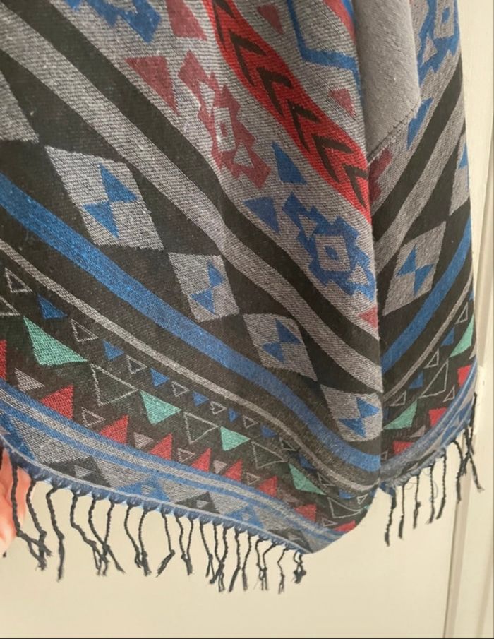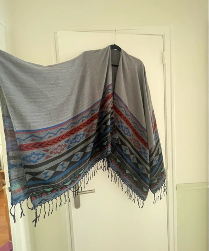 Châle - écharpe - voile - poncho Motifs ethnique Très bon état peu porté Gris noir rouge bleu vert