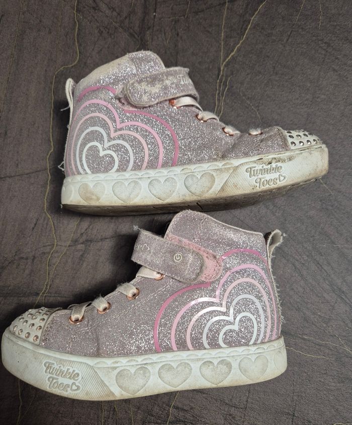 Maison non fumeur Très bon état très peu portées. Pointure 28 Marque Skechers Twinkle Toes lumière Rose paillette Aucune usure, la semelle intérieure n'est pas marquée par le portage car peu mises. #ggchaussures #chaussuresgg2703 #skechersfille28 #tinkletoes #skecherslight