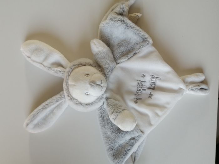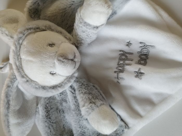 doudou plat peluche ours déguisé en lapin brodé happy baby orchestra prémaman 22 cm x 22 cm