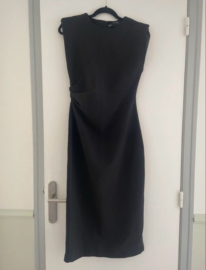 Belle robe noire Porté une seule fois ZARA / TRÈS BON ÉTAT 38 Fermeture éclair Fente arrière Épaulette Et plissé sur le côté #zara #zarawoman #zara