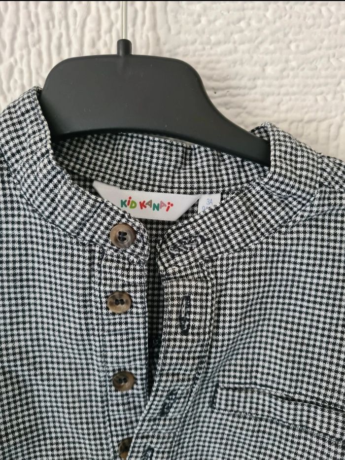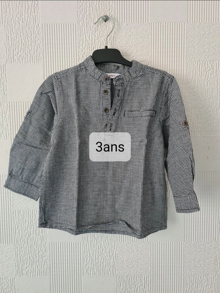 Chemise blouse col mao, fermeture boutons au col, petits carreaux noir et blanc, longueur des manches courtes ou longues, très bon état, pas de tâches ou trous, envoi soigné. Kid Kanaï, 3 ans