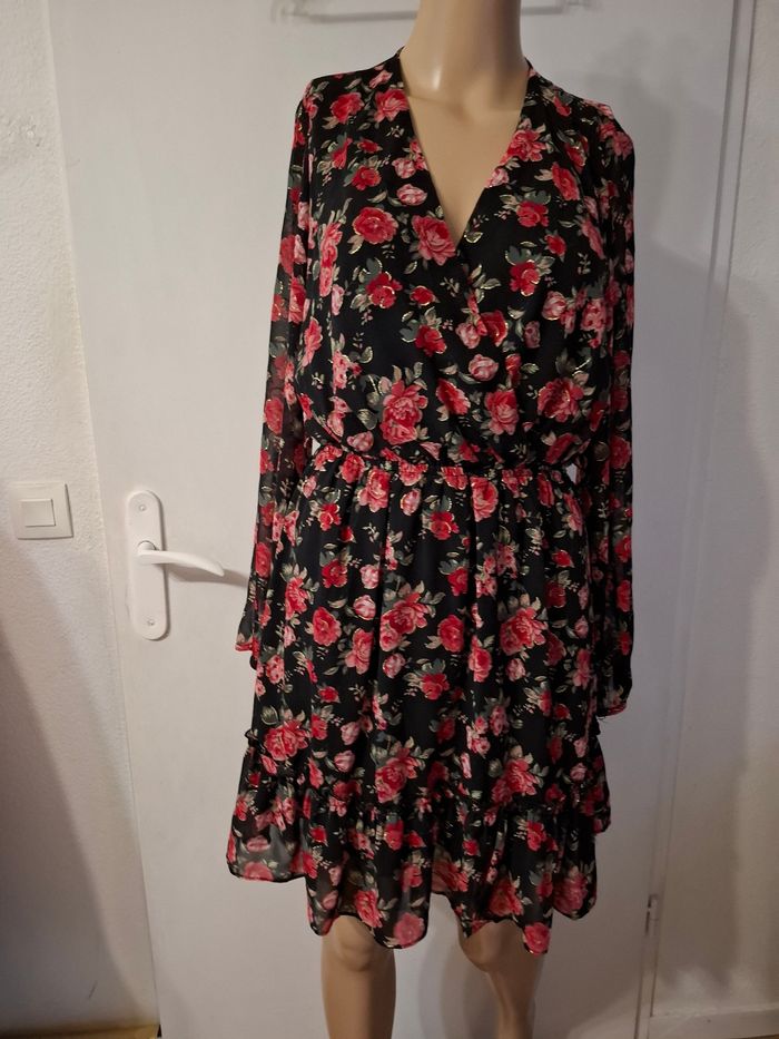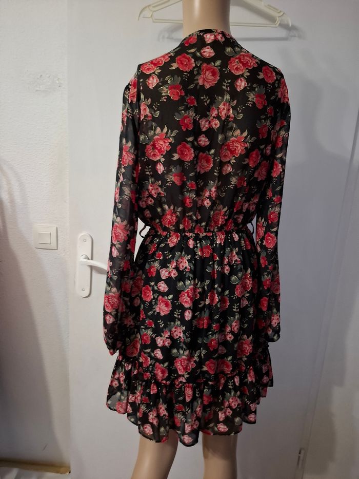 Robe kilky taille 36/38 en très bon état Longueur 89 cm Largeur aisselle à aisselle 48 cm Largeur de taille Élastique Avec doublure sauf le dos et les manches Sans ceinture