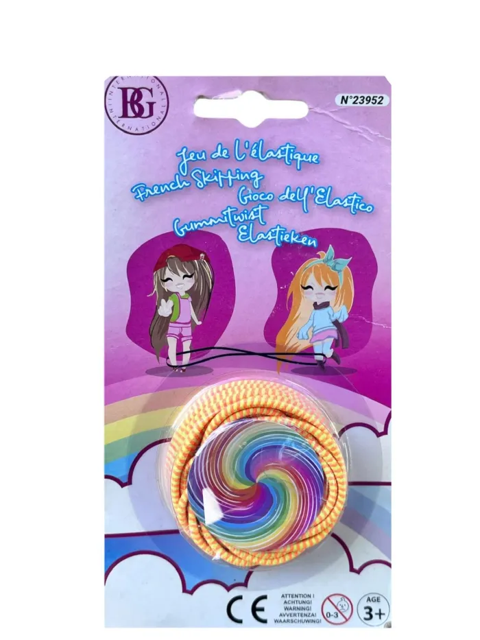 Élastique de jeu coloré, idéal pour les filles pour jouer à la cour de récréation ou à des jeux traditionnels d’extérieur. Flexible et résistant, il permet de sauter, étirer et inventer de nombreuses variantes de jeux. Léger et facile à transporter, parfait pour s’amuser en toute sécurité.