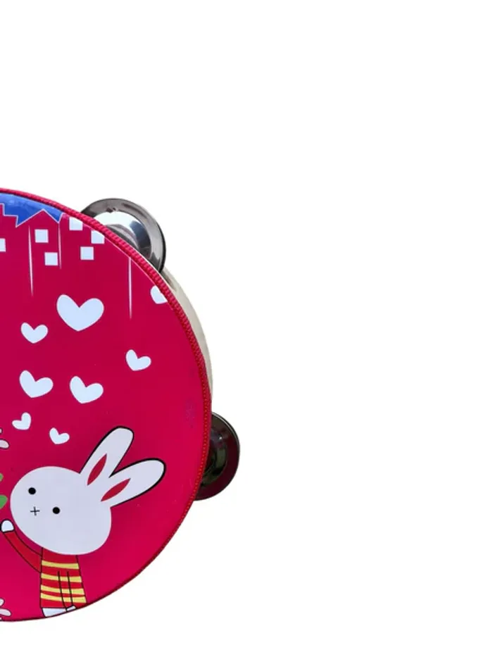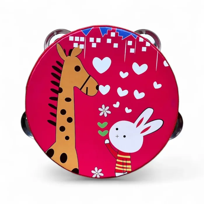 Faites découvrir la musique aux plus jeunes avec ce tambourin coloré pour enfants, décoré de jolis motifs de lapin et de girafe. Il est équipé de 4 timbales métalliques, produisant un son clair et amusant qui stimule le sens du rythme et la coordination. Son diamètre de 15 cm le rend facile à tenir pour les petites mains et idéal pour les premières expériences musicales.