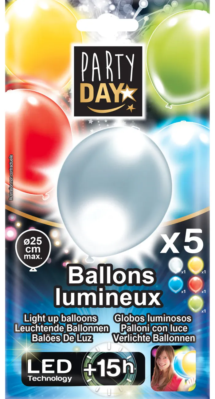 X5 ballons LED lumineux Déco Party– 15 h d’autonomie - 25 cm Neuf