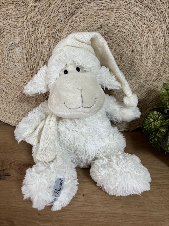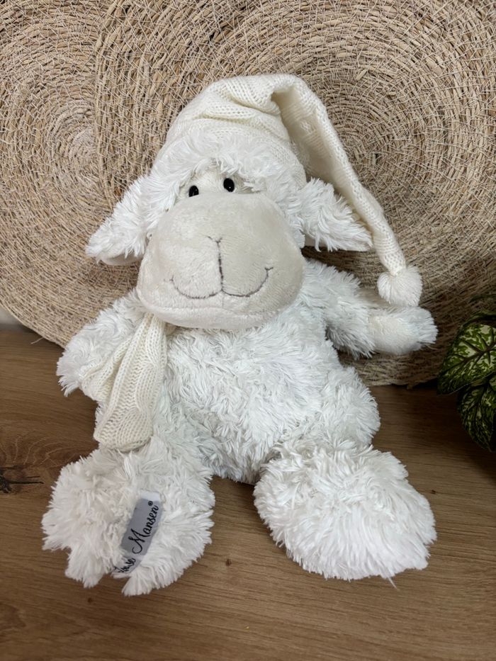 Très bon état 34 cm sans compter le bonnet Envoi rapide #doudoumoutonblanclouisemansen #doudoumoutonblancecharpebonnetlouisemansen