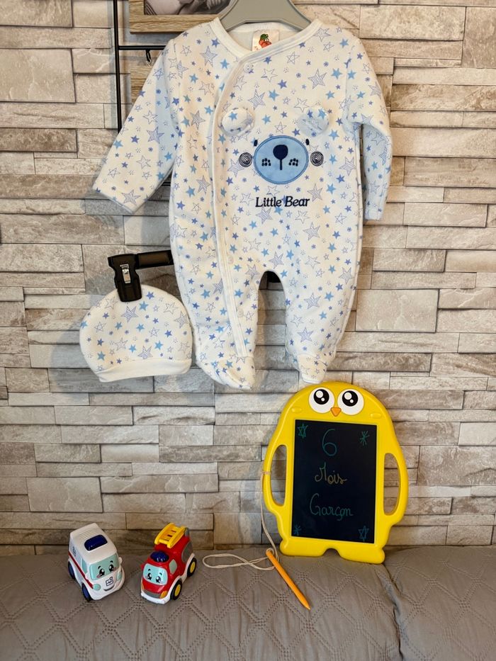 Pyjama polaire et bonnet Taille 6-9mois Marque sweet cherry Neuf sans étiquette jamais mis à mon fils #6mois #garcon #vêtementgarcon #vêtement6mois #neufsansétiquette #pyjamapolaire