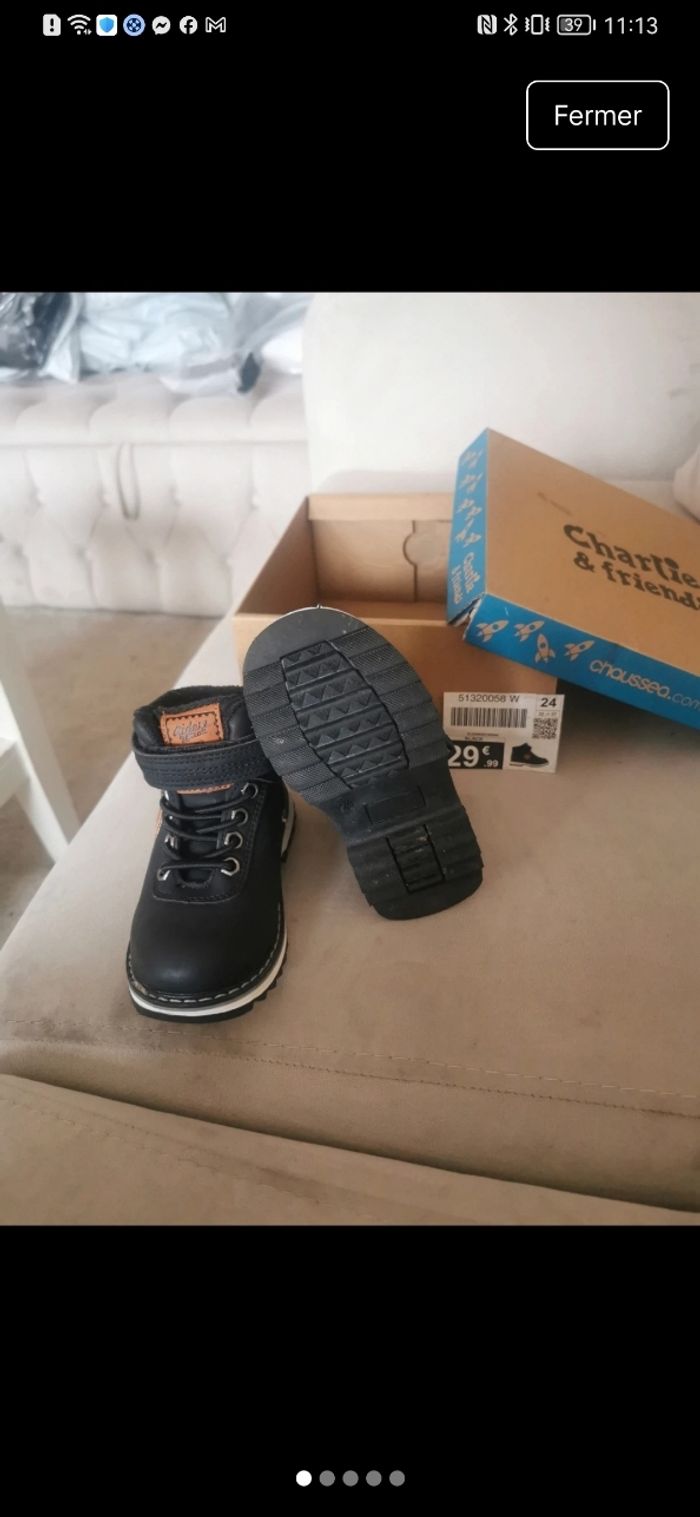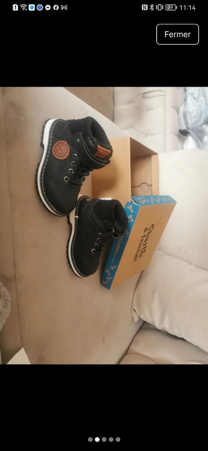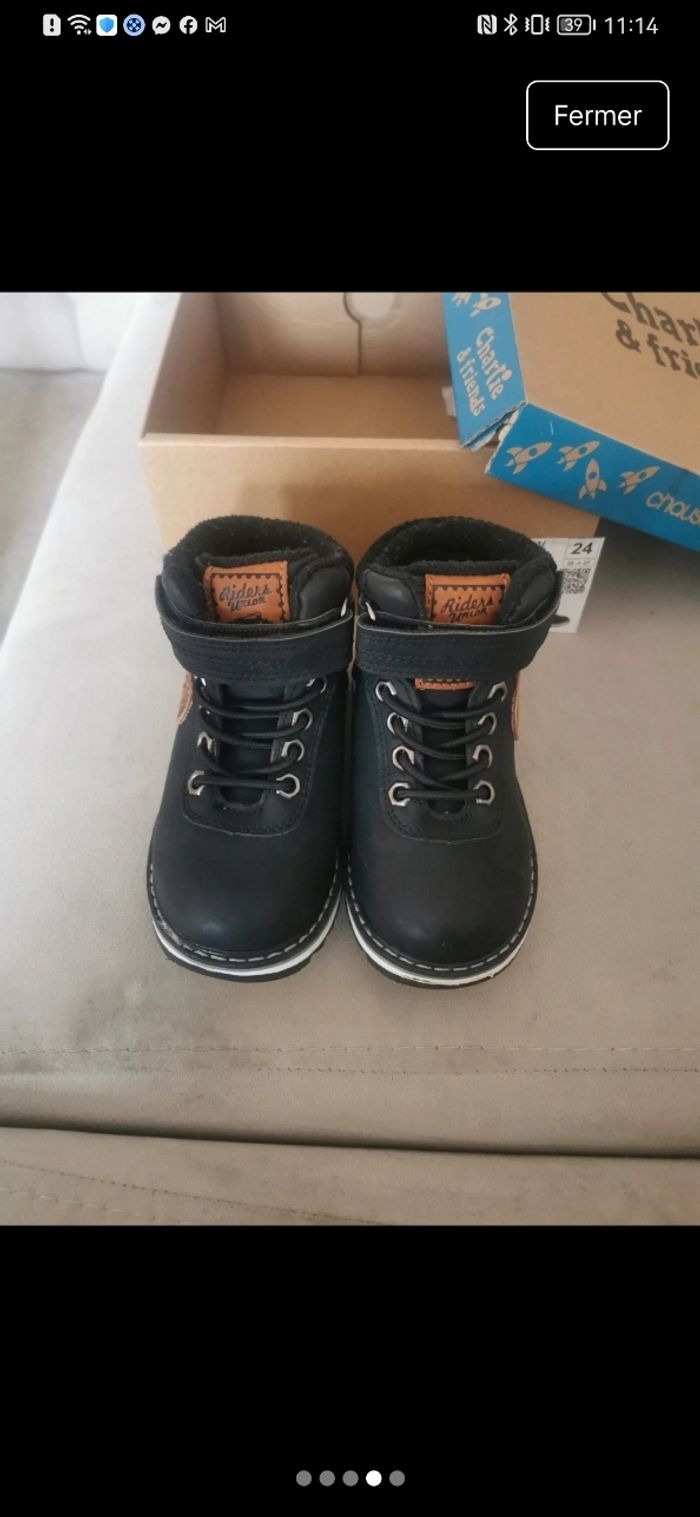 Bottines noires garçon - Taille 24  - photo numéro 3