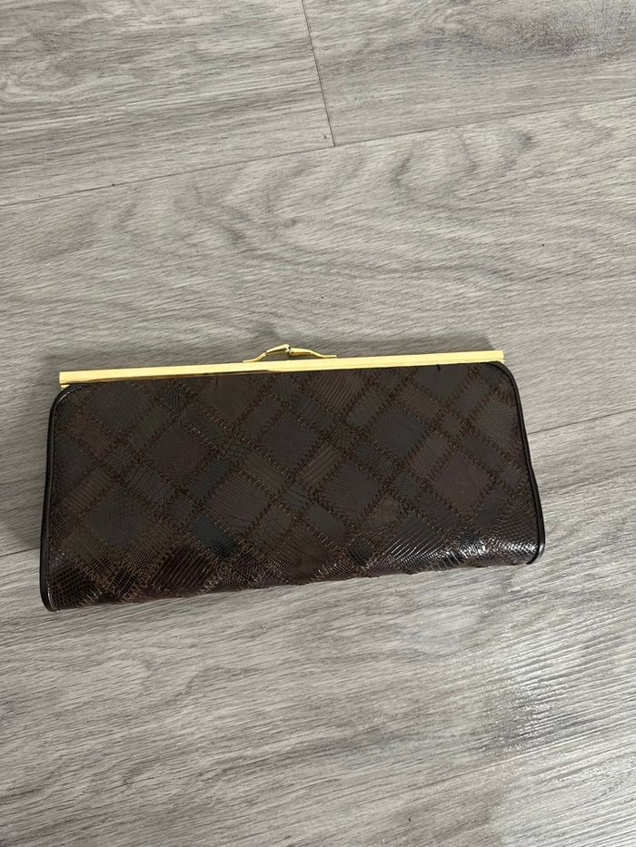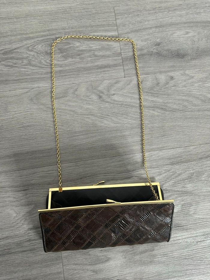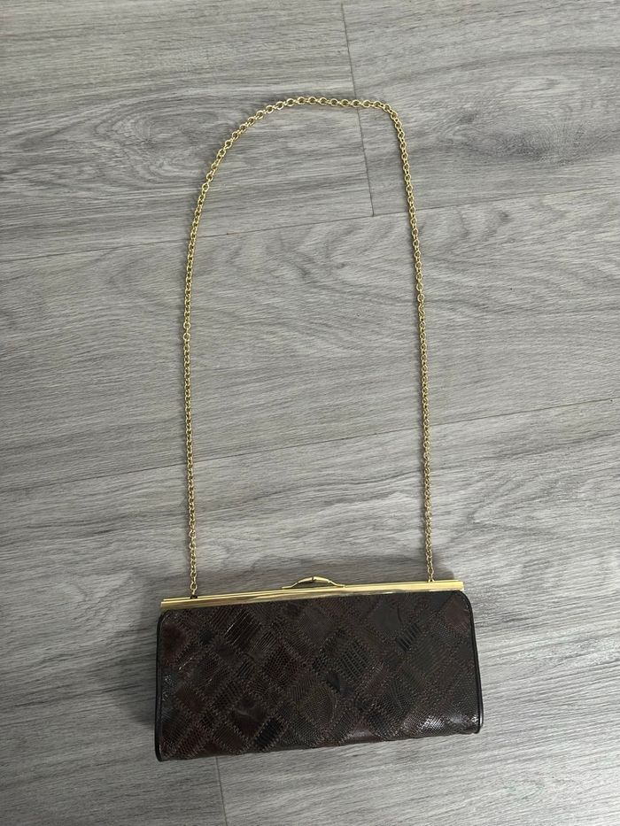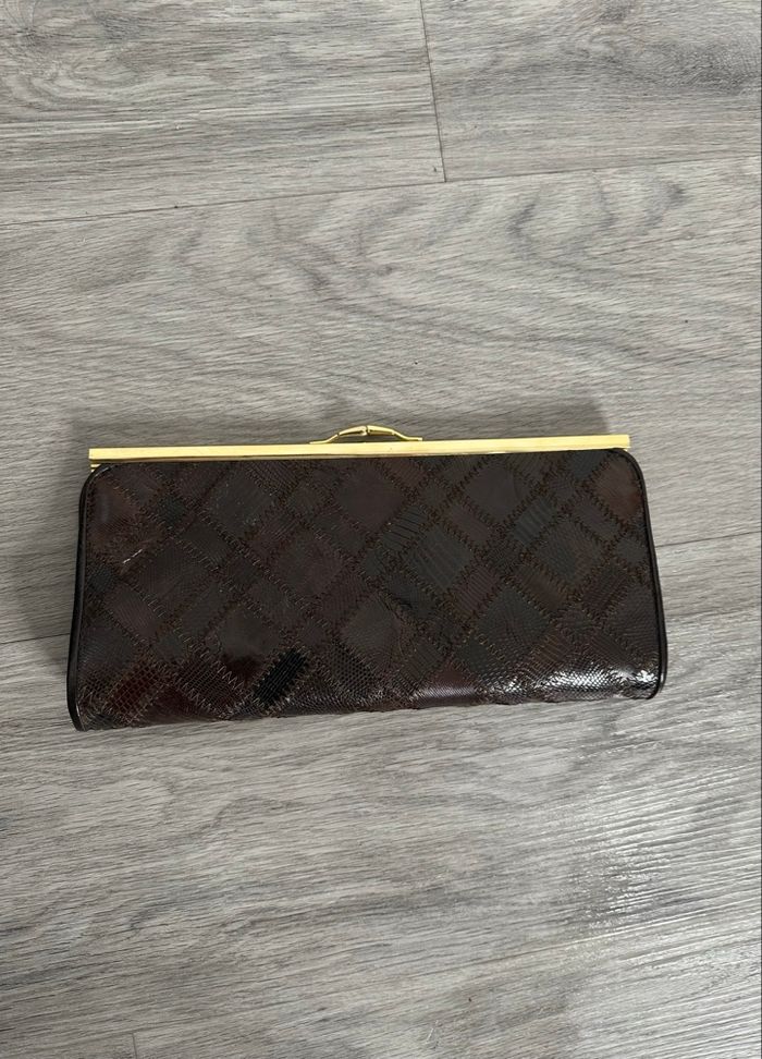 Pochette patchwork en cuir marron et doré Vintage  - photo numéro 1