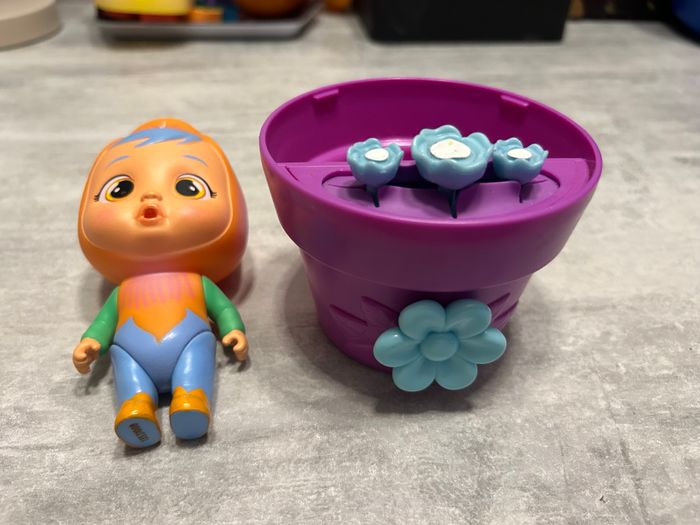 bébé figurine en plastique dans un pot de fleurs  - photo numéro 2
