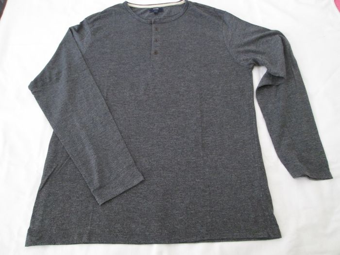 Vends tee-shirt col tunisien gris à manches longues. 100 % coton. Taille XXL. Très bon état. N'hésitez pas à consulter mes autres annonces.