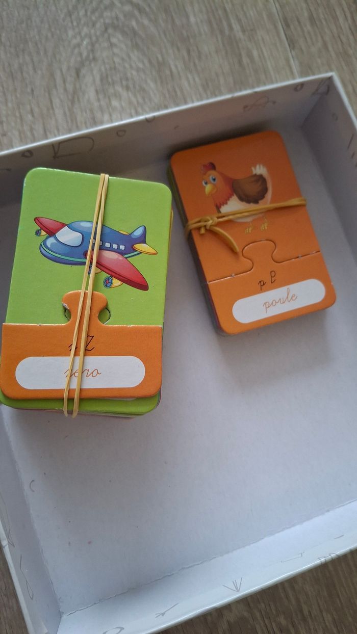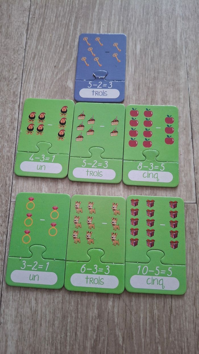 ATTENTION JEU NON COMPLET La partie chiffres est complet La partie alphabet il manque X,Y et Z. Jai des cartes doublons également La partie additions NON complet avec des cartes doublons La partie soustractions NON complet avec des cartes doublons