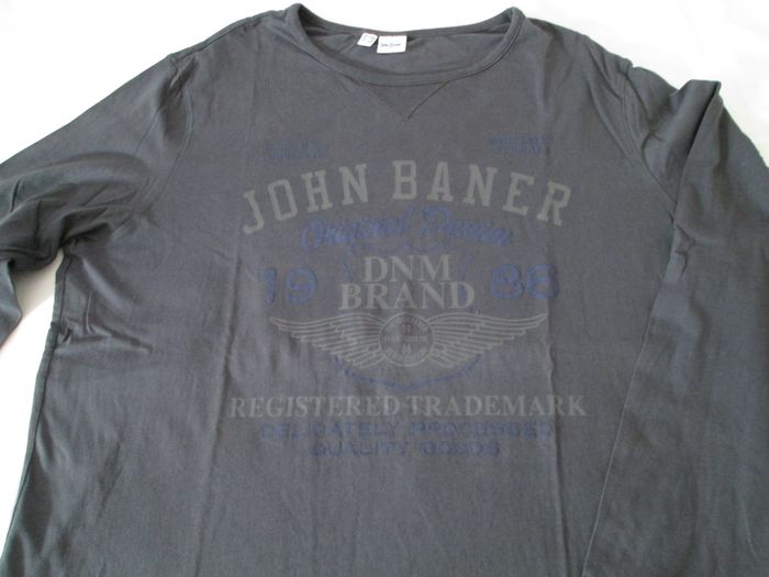 Vends tee-shirt John Baner à manches longues avec écritures. 100 % coton. Taille 60/62. Neuf, jamais porté. N'hésitez pas à consulter mes autres annonces.
