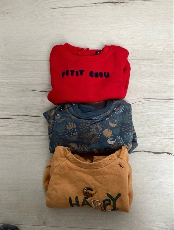 3 sweats molletonnés bébé garçon Très bon état (le rouge est neuf) 3 mois - 59 cm