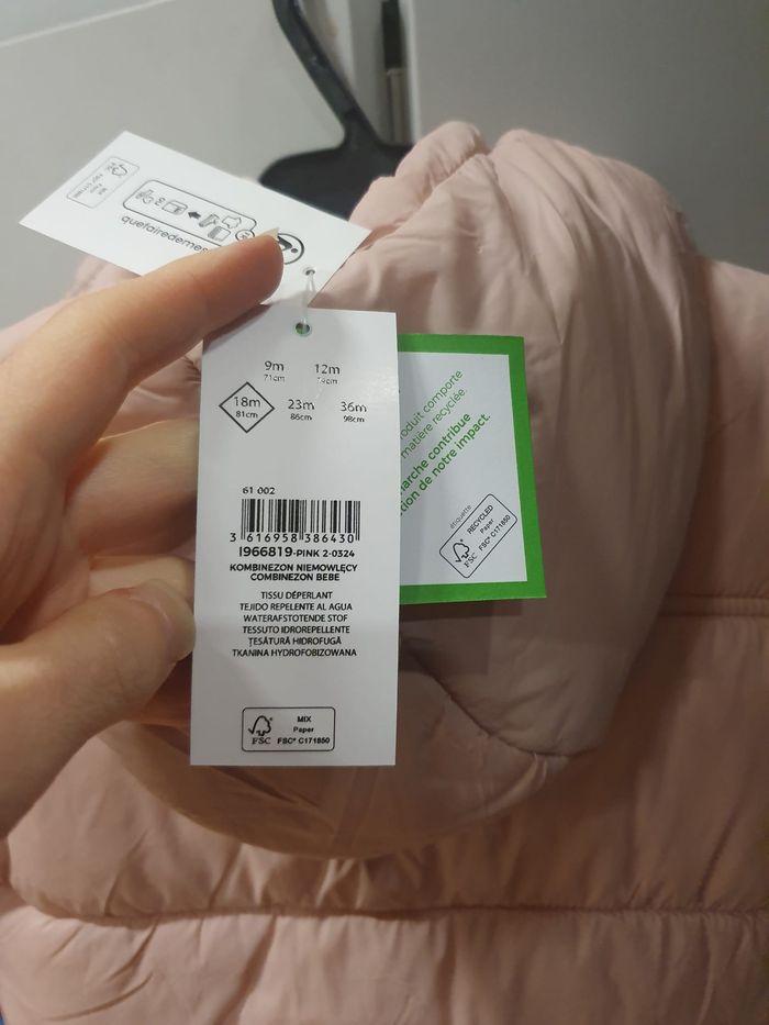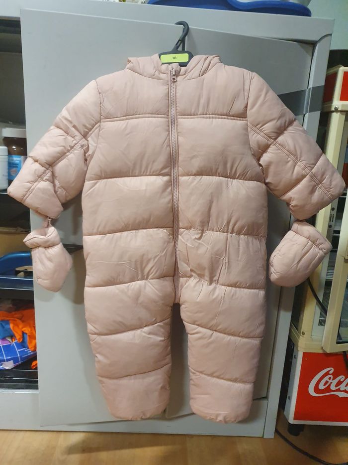 Combinaison fille rose pastel 18 mois Neuve molletonnée à l’intérieur avec moufles amovibles. Possibilité de passer les sangles pour le cosy. Tissu déperlant. Valeur : 30€