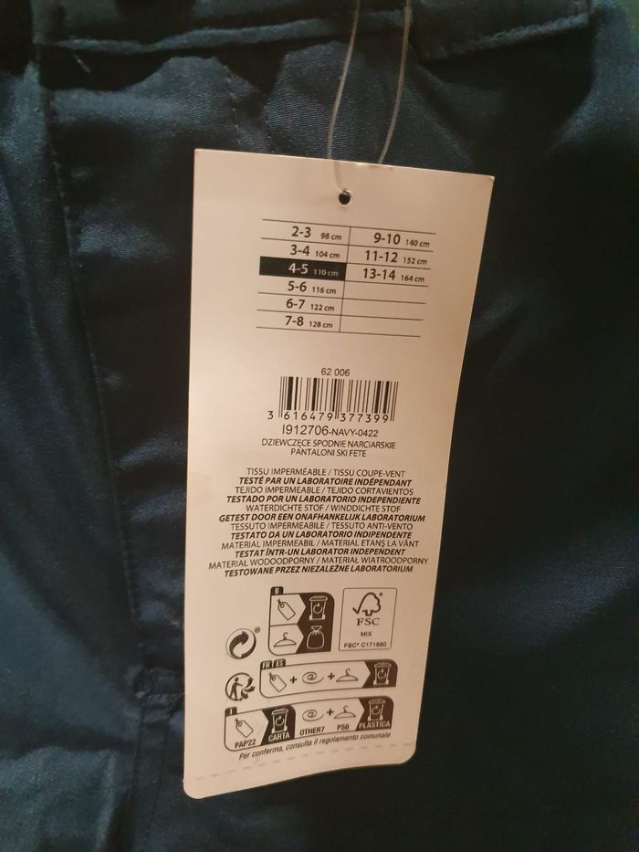 Pantalon de Ski Marine avec Bretelles Neuf T4-5 ans avec étiquette jamais porté. Intertek High performance imperméable et coupe-vent. Valeur : 20€