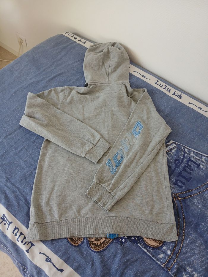 A vendre un sweat à capuche avec fermeture éclair de la marque "Lotto", en taille L, en très bon état.