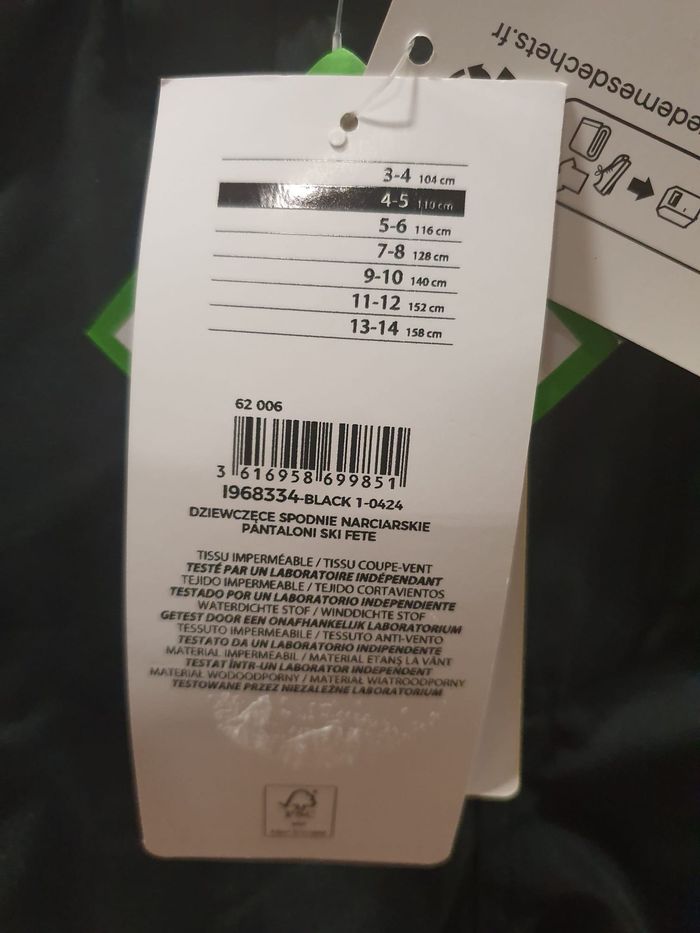 Pantalon de Ski Noir avec Bretelles Neuf T4-5 ans avec étiquette jamais porté. Tissu imperméable et coupe-vent. Valeur : 15€
