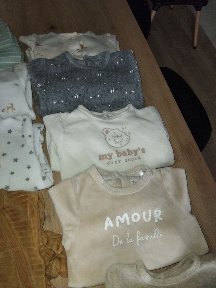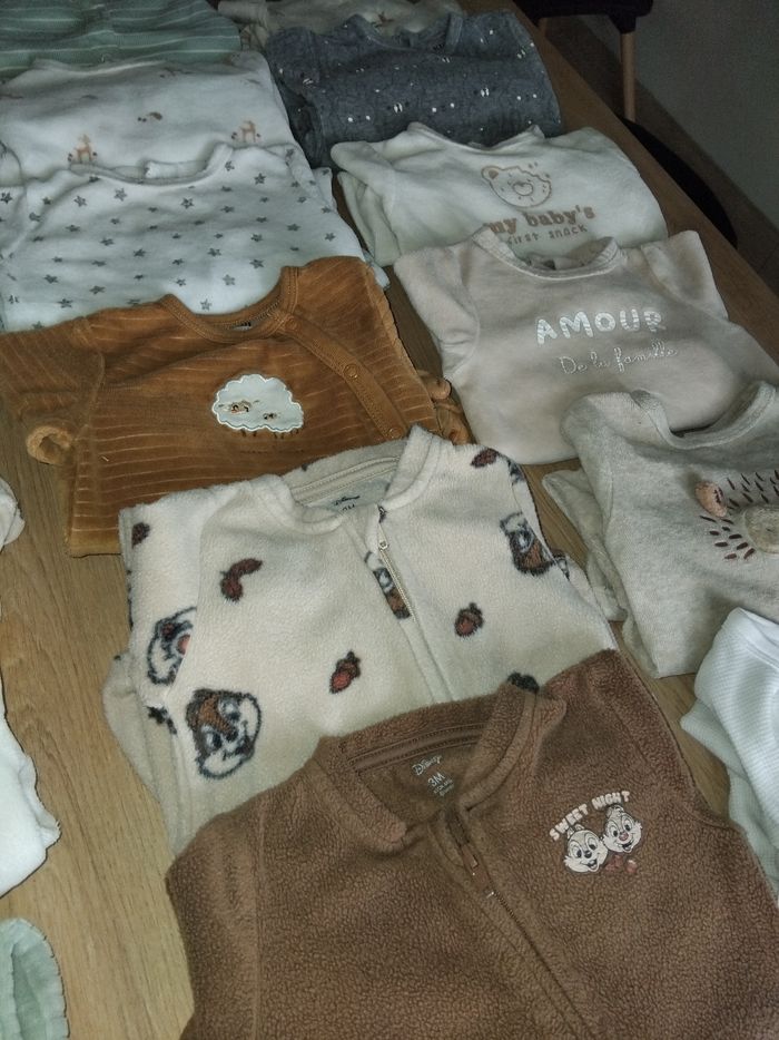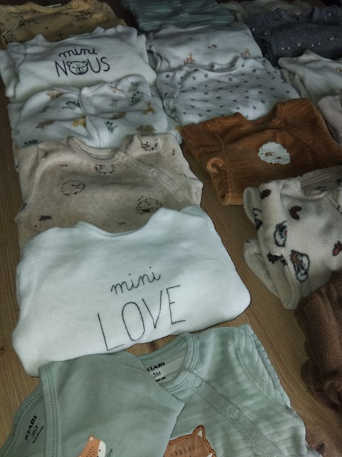 Lot de 18 pyjamas taille 3 mois +1 bodies assorti au pyjama Diverse marque mais principalement kiabi Très bon état Prix du lot 20e Possible au détail 2e le pyjama me contacter pour plus d'informations