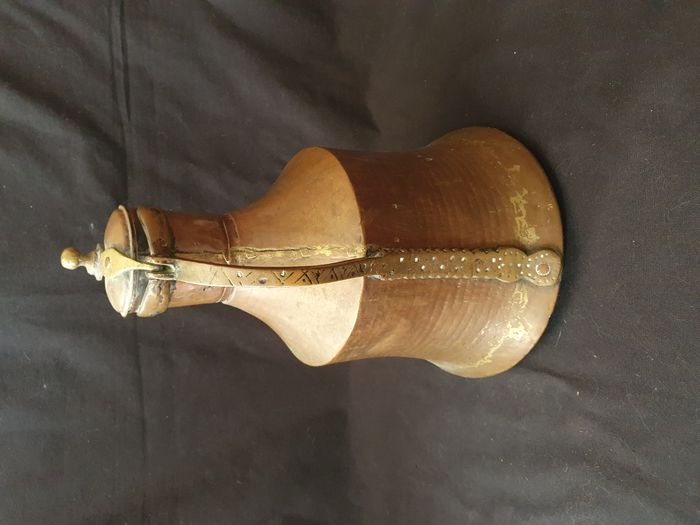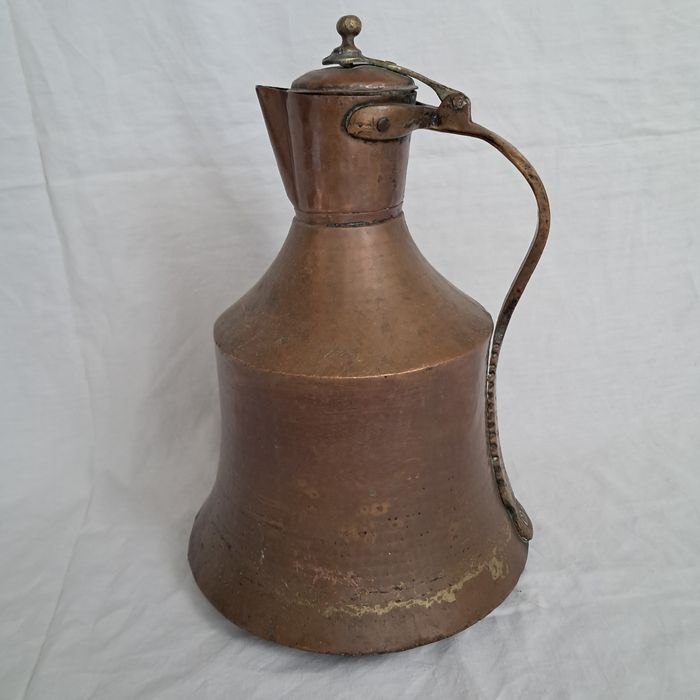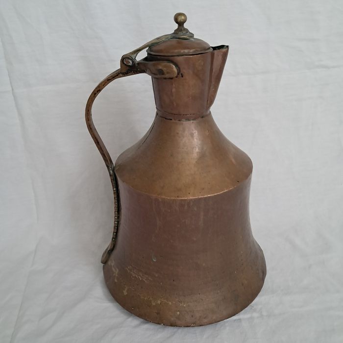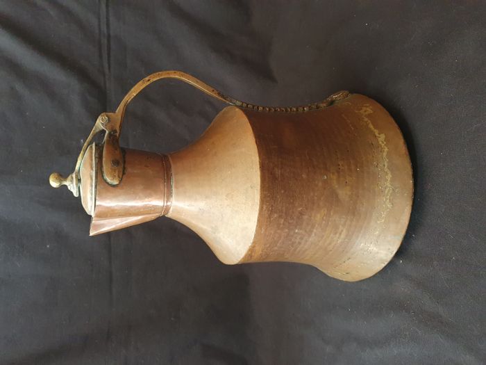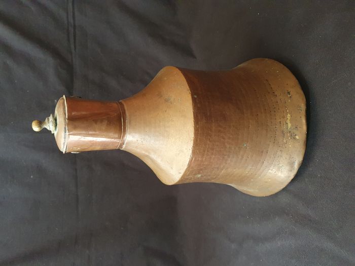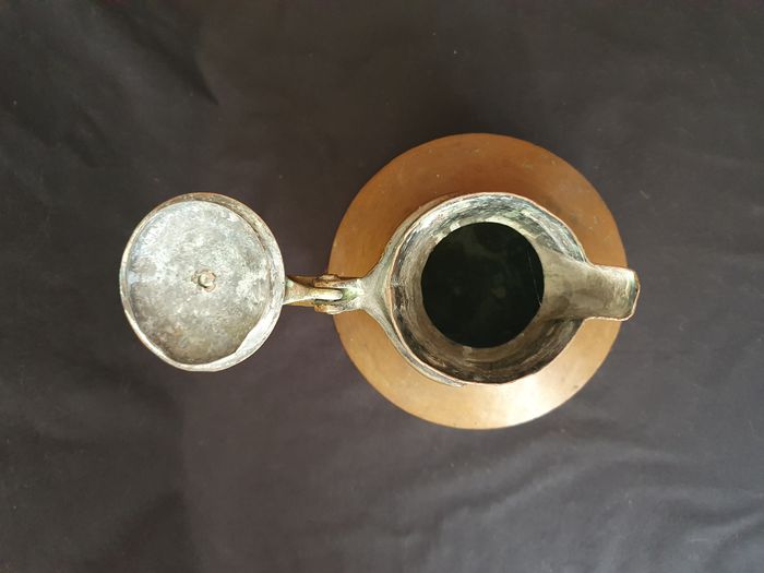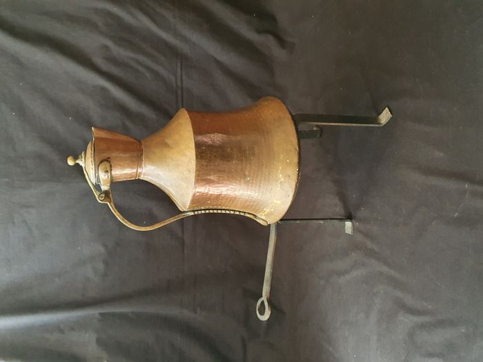 Ancienne grande théière en cuivre H 41 cm + support - photo numéro 1