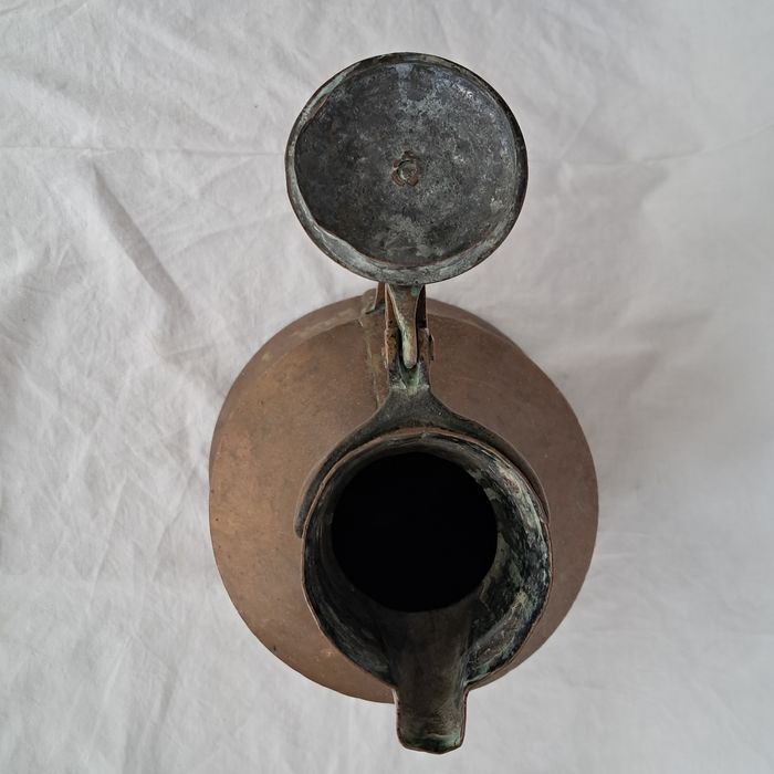 Ancienne grande théière en cuivre H 41 cm + support - photo numéro 8