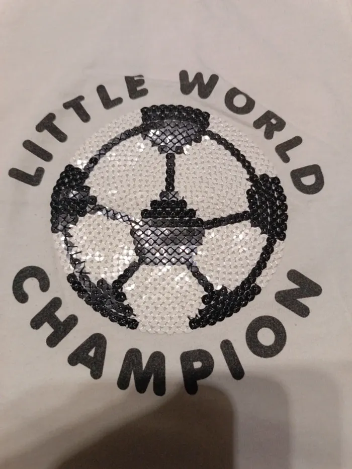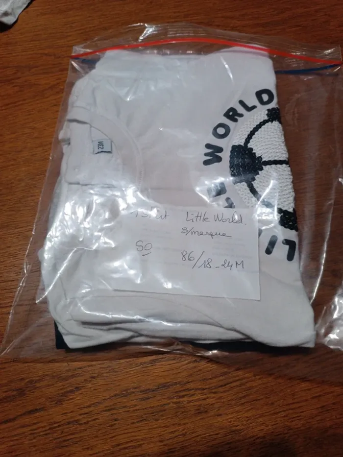 T-shirt blanc "Little World" sans marque 86-18/24M. 100% coton. TBE