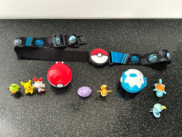 Une ceinture Pokémon, 2 pokeballs et 7 figurines pokemon  - photo numéro 1