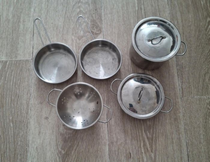 Un peu de rouille a certains endroits + il manque une anse a la marmite mais sinon ustensiles en bon etat avec 2 couvercles