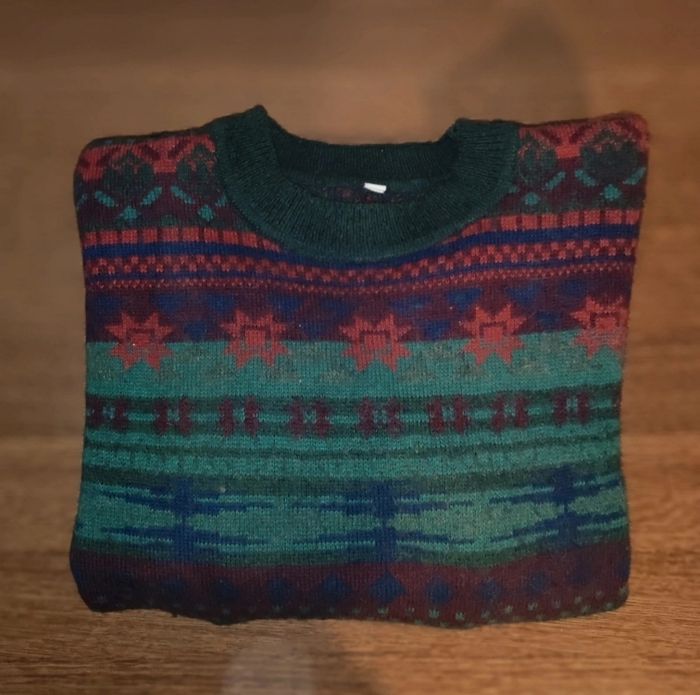 Je vends ce pull vintage en très bon état. Marque : Inconnue (étiquette effacée) Matière : 50% Acrylique 25% Laine 25% Alpaga