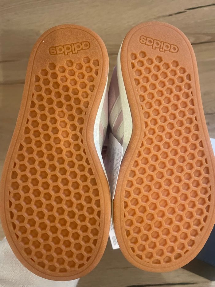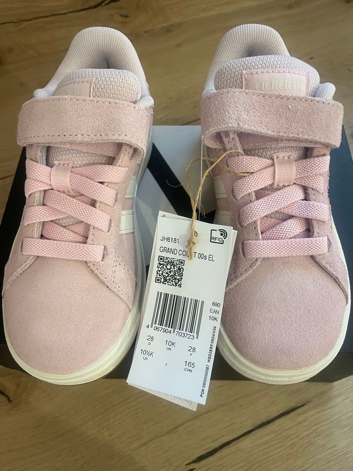 Vends chaussures Adidas Grand Court 00s EL C pour enfant, 👉 Pointure : 28 👉 Couleur : rose pâle avec bandes blanches 👉 Fermeture : scratch + lacets élastiques (faciles à enfiler) Chaussures neuves, jamais portées, avec boîte d’origine. Modèle confortable et tendance, idéal pour le quotidien. 💰 Prix : 30