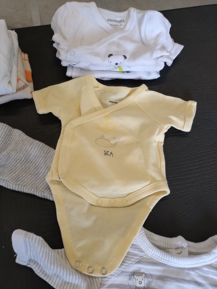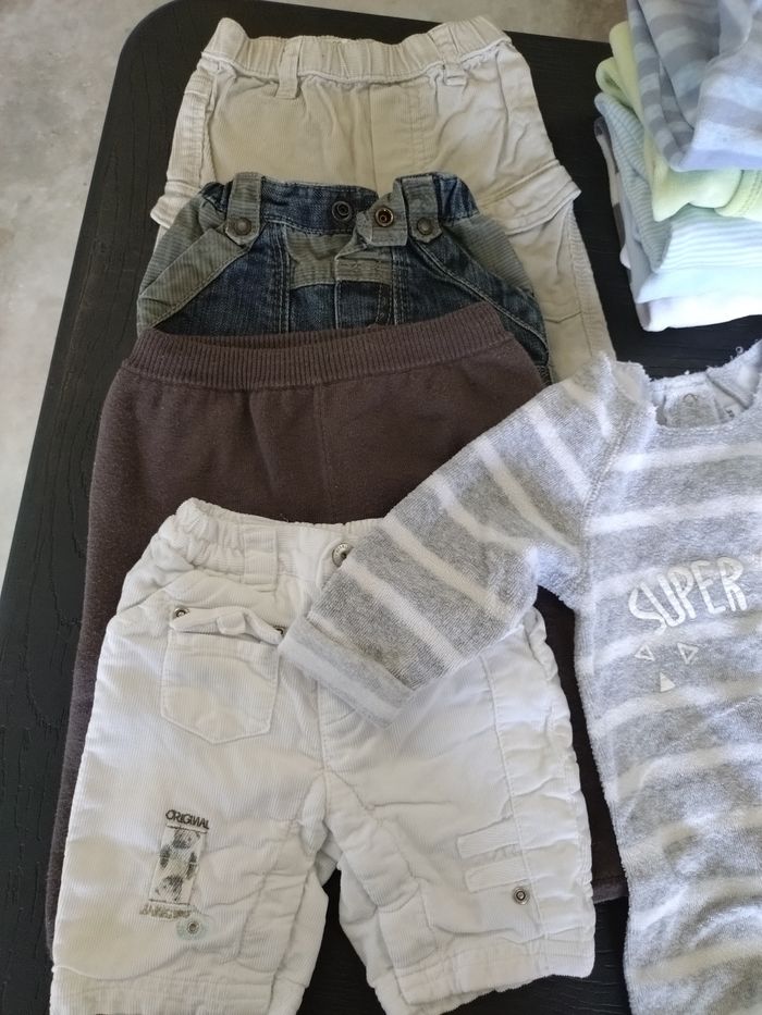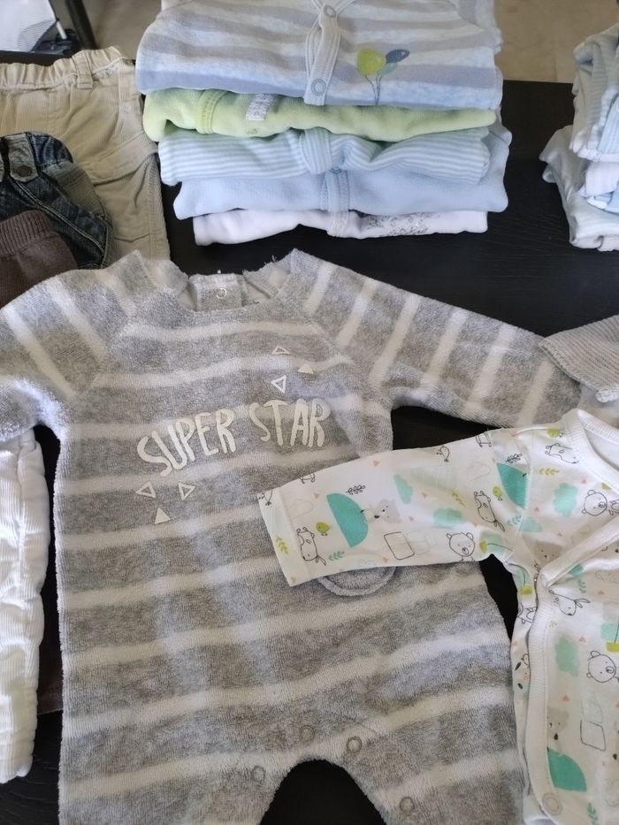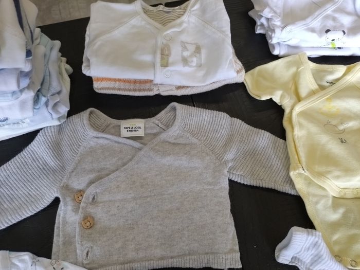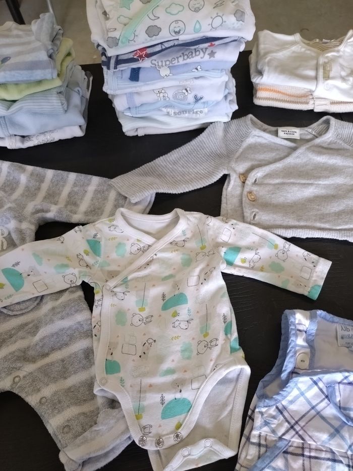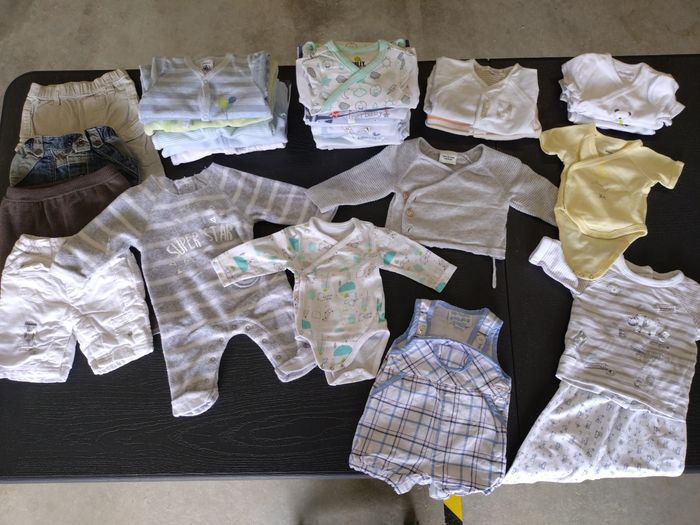 Lot vêtements bébé 50 cm, en bon état, toujours pris soin des habits, toutes marques confondues : - 4 pantalons - 6 pyjamas - 13 body manches longues - 4 body manches courtes - 1 salopette - 3 gilets - 1 pyjama 2 pièces