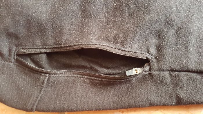 Pantalon de sport homme Taille 48-50 (3 XL) Couleur noir Jambes larges resserrées aux chevilles 2 poches zippées dont 1 ne fonctionne plus (voir photo) Taille élastique avec cordon de serrage Marque Regular