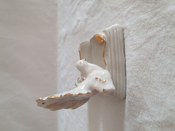Statuette colombe sur un livre décoration porcelaine blanche et liseré or - photo numéro 1
