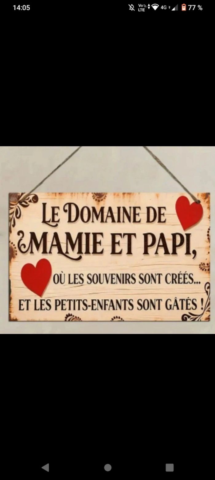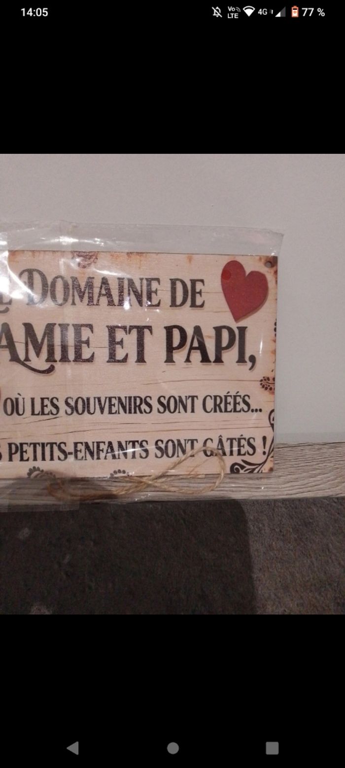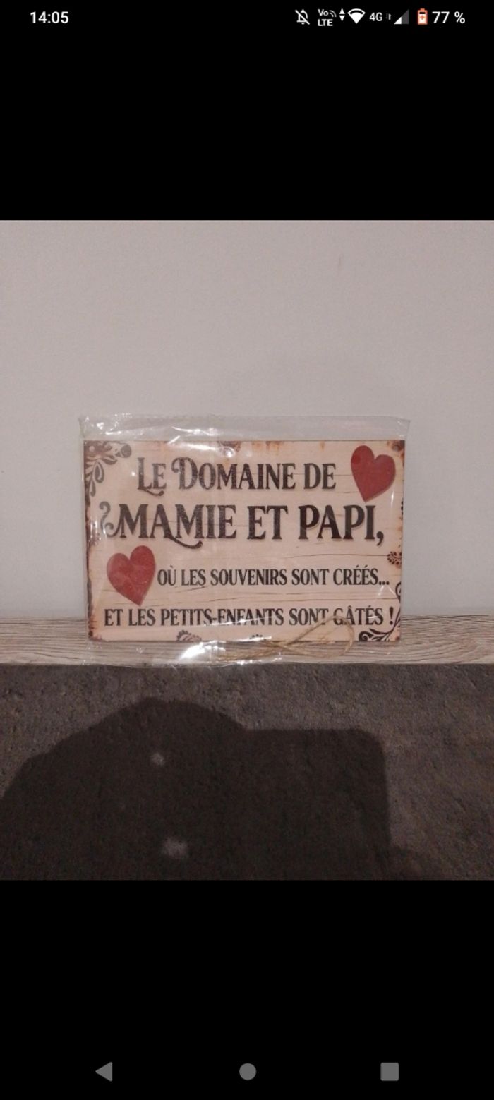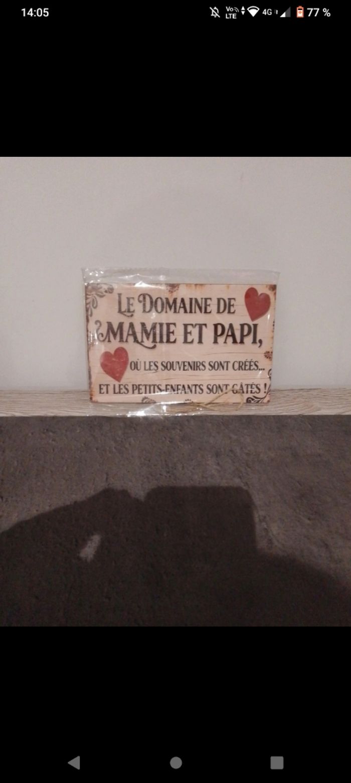 Jolie plaque en bois Le domaine de papi et mamie Neuve 20/12,7 cm
