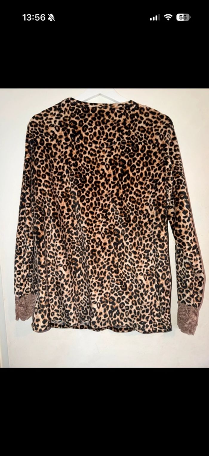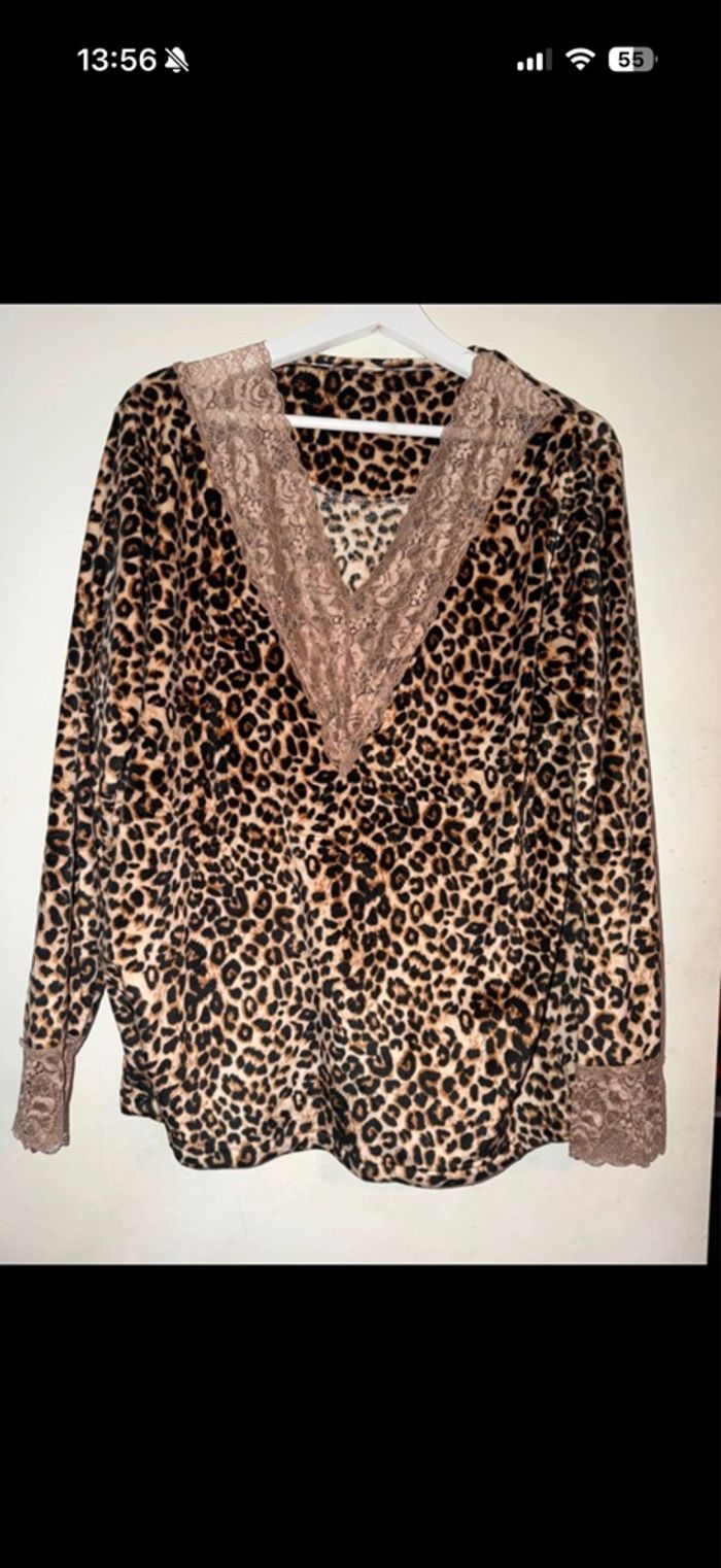 Bonjour je vend un pyjamas léopard jamais mis neuve, taille 40 la matière et très doux ni tachée ni trouée bonne journée