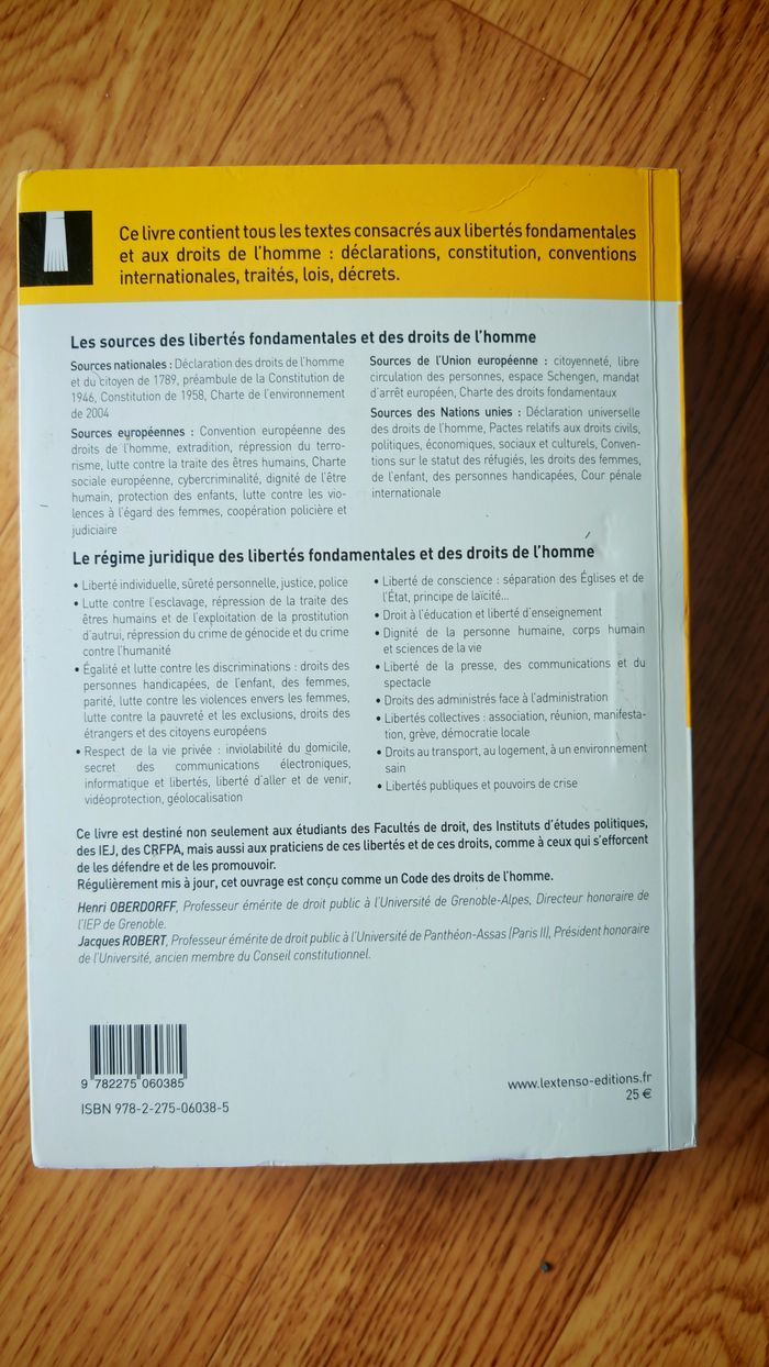 Libertés fondamentales et droits de l'homme 2018 – mais les textes sont encore valable Ouvrage autorisé a l'examen d'accès au CRFPA Non surligné Livraison possible