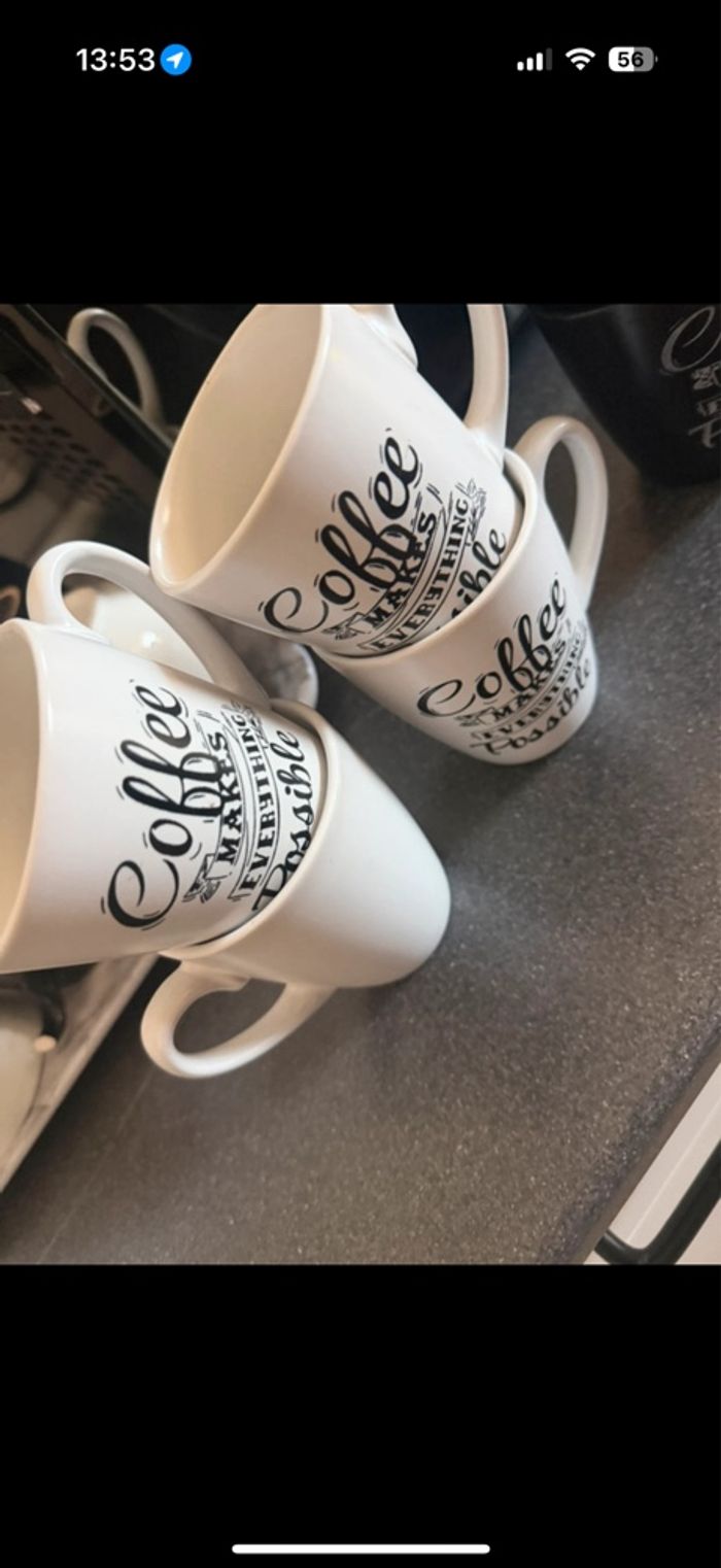 Bonjour je vend des tasse à café de chez action jamais utiliser, ni casser ni abîmer bonne journée