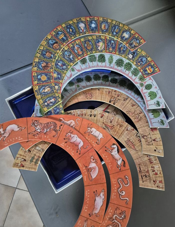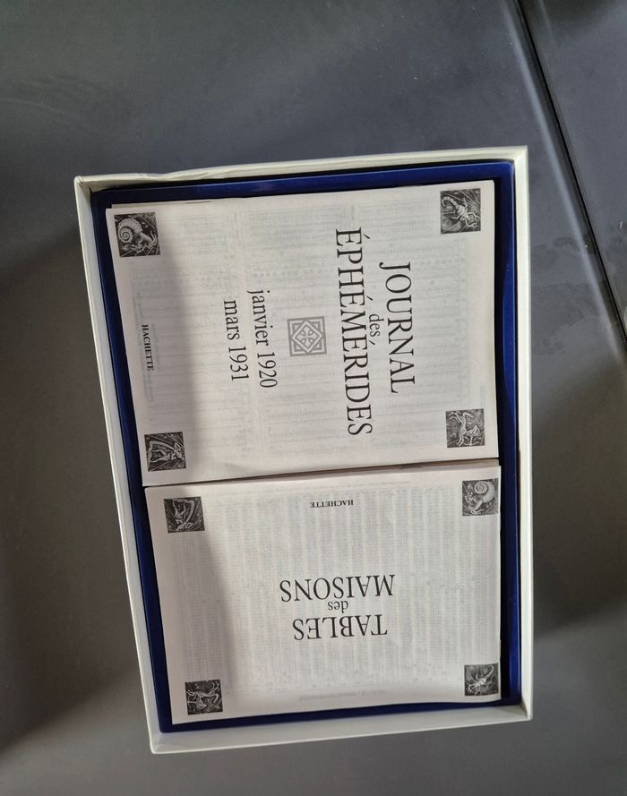 Vends coffret d'accessoires de la collection Hachette "Apprendre et Connaître l'Astrologie". L'ensemble est en très bon état. ​Le lot comprend : ​Le jeu de Tarot divinatoire complet (78 cartes). ​Le Journal des Éphémérides (9)et les Tables des Maisons (1). Heure dans le monde (1) ​Les fiches cartonnées de Chiromancie (étude de la main). ​Les réglettes d'astrologie chinoise et égyptienne. ​Les carrés magiques et jetons planétaires. ​Idéal pour débutant ou collectionneur. Envoi rapide et soigné.
