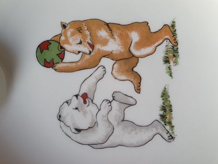 Assiette chauffante Limoges France maintien au chaud enfant blanche dessin ours et canetons