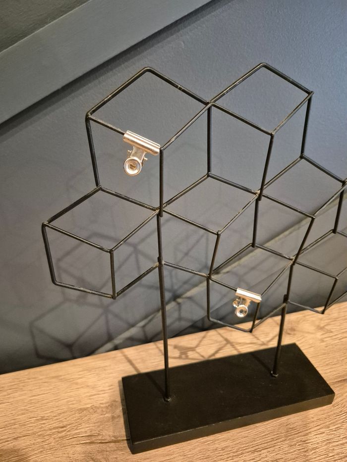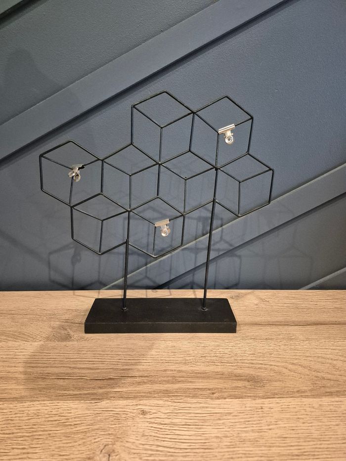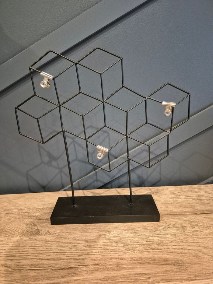 En très bon état Avec 3 pince en métal pour y accrocher des cartes ou des photos Socle en bois Hauteur : 30 cm Largeur : 30 cm