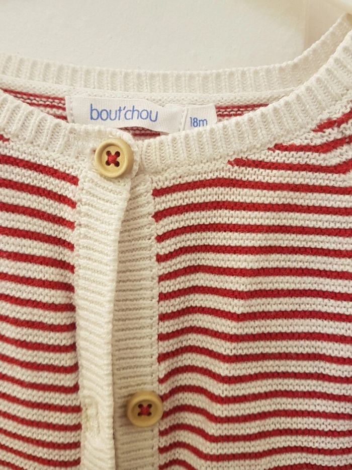 Gilet fine maille coton rayé rouge Boutchou 18 mois - photo numéro 5