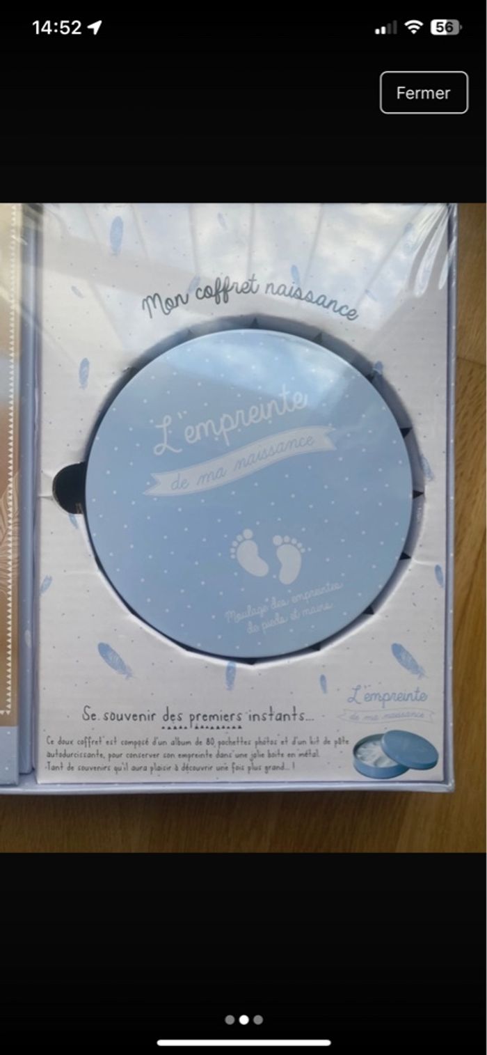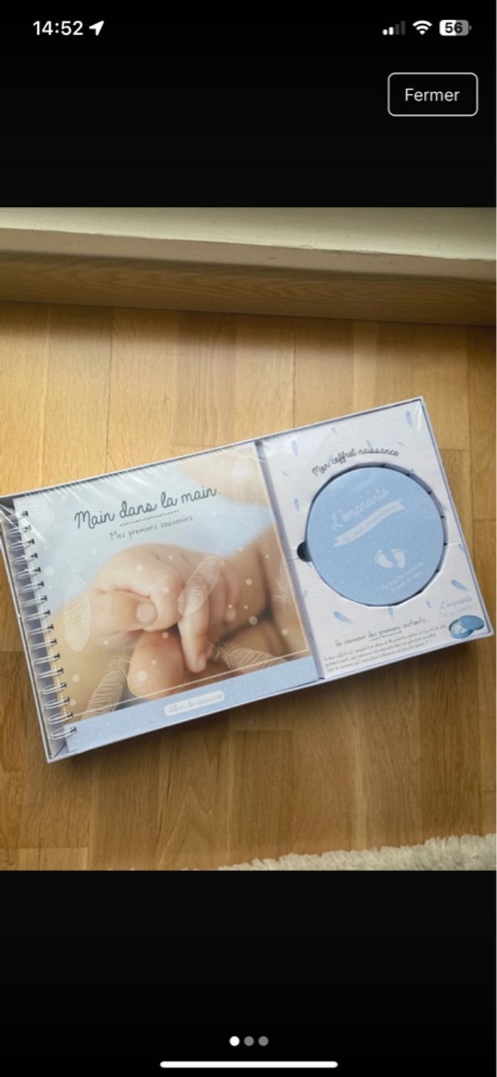 Coffret de naissance incluant un album et un kit pour empreintes bébé. Neuf sous plastique