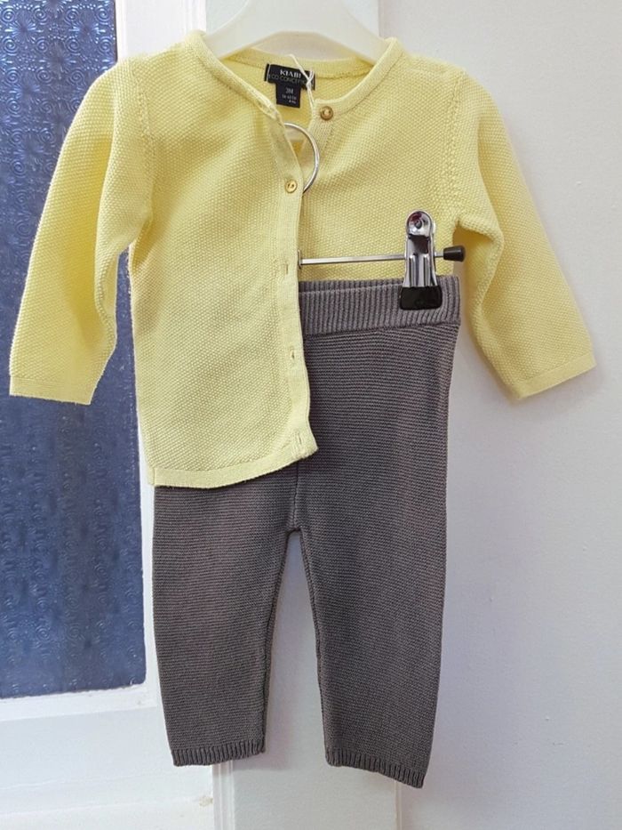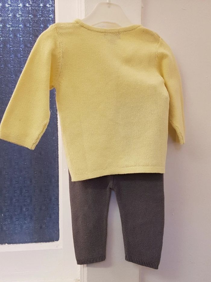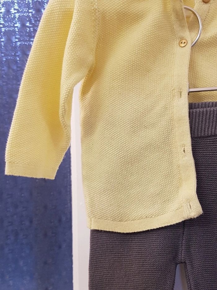Lot gilet jaune pantalon gris maille coton 3 mois