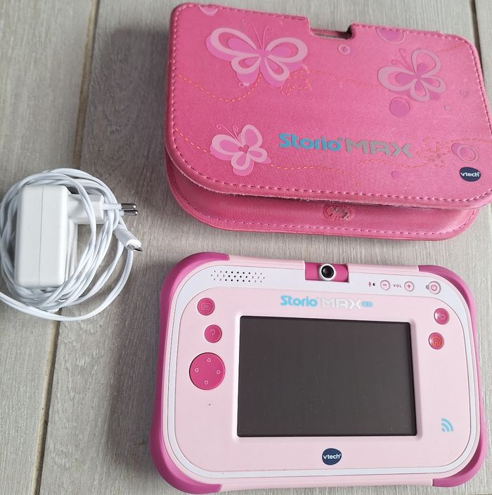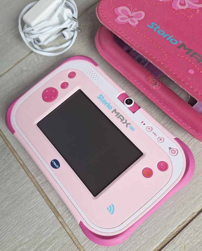 Tablette storio max 2.0 vtech Chargeur secteur original vtech Housse de protection original vtech Couleur rose et violet En parfait état de fonctionnement Remise a zéro Prête à l emploi